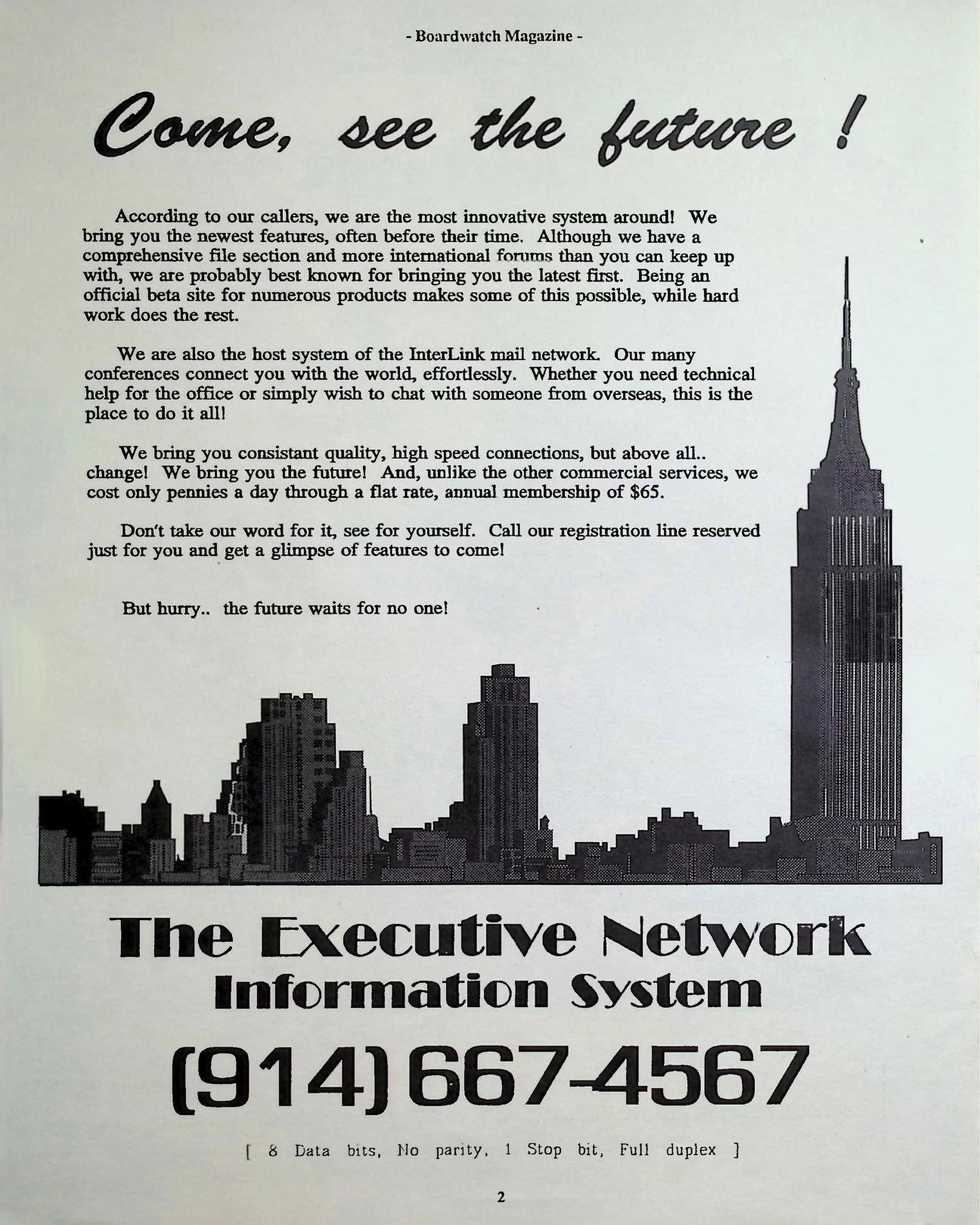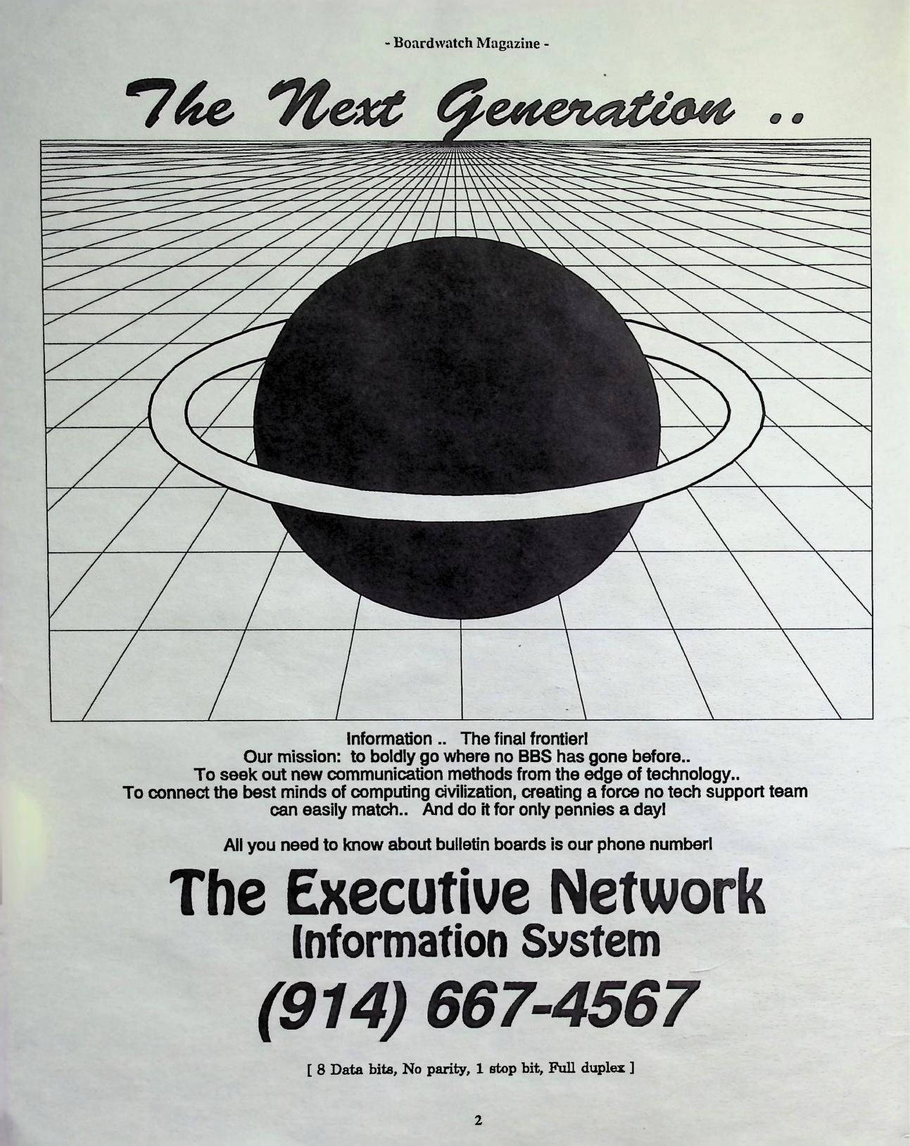 A science-fiction themed advertisement promoting ExecNet as “The Next Generation” of bulletin