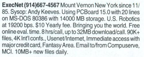 Together, these materials document ExecNet’s evolution from a LAN-based Bulletin Board System